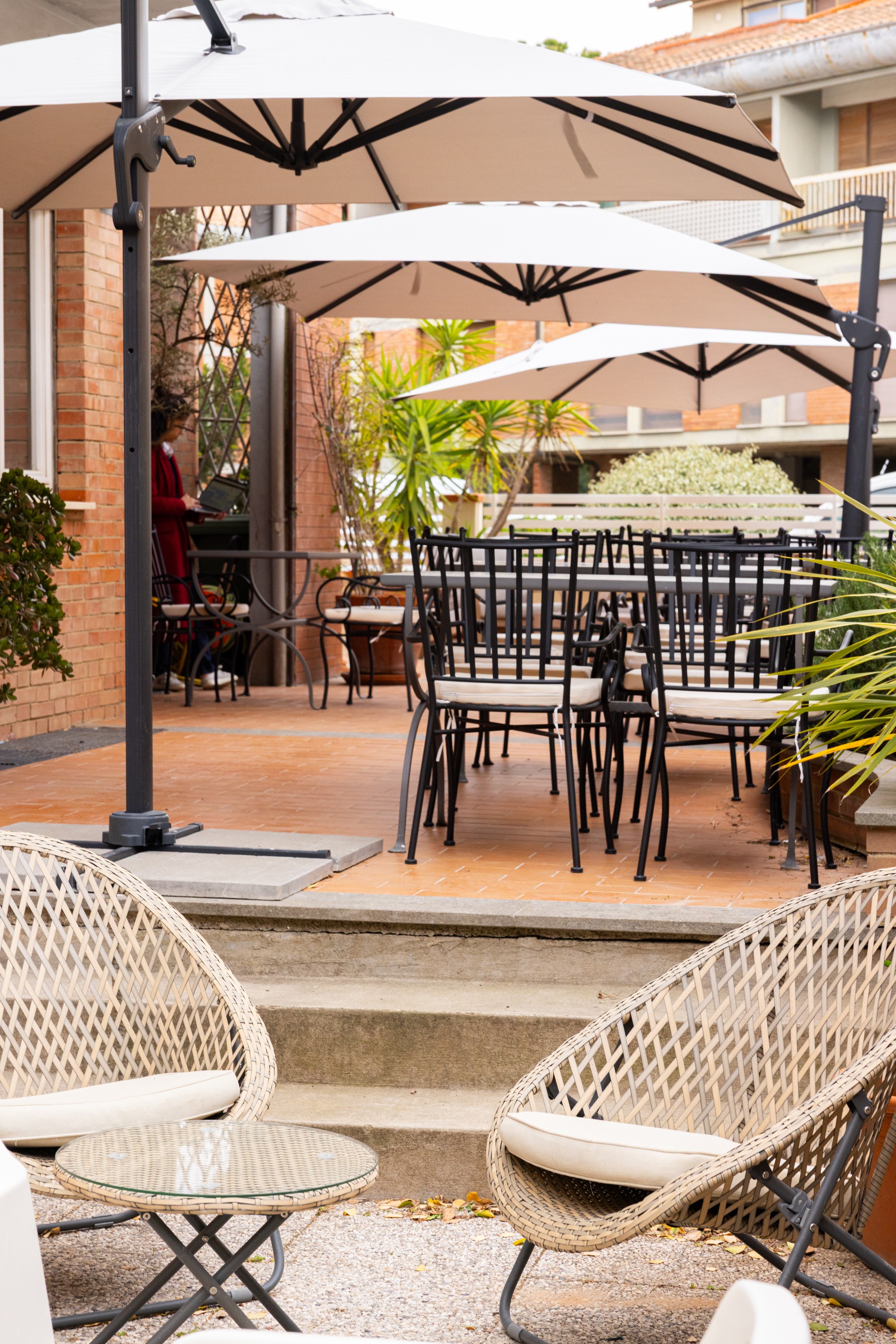 Il momento dell'aperitivo diventa speciale nei nostri spazi esterni. Goditi un drink in relax, circondato dal verde e dall'atmosfera tranquilla che solo Albergo Mirella sa offrire.